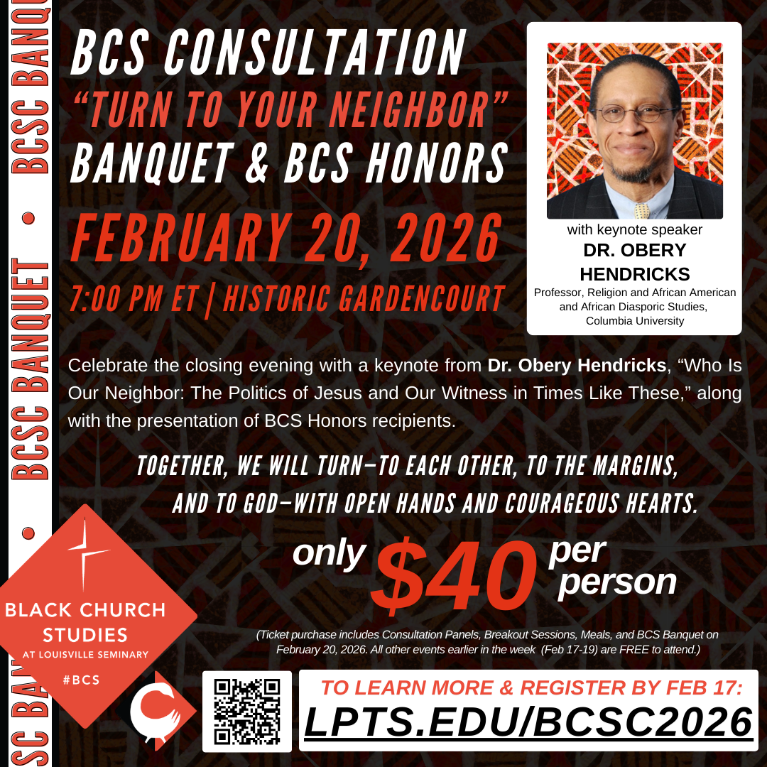 This community worship is part of a series of events leading up to the annual Black Church Studies Consultation: "Turn to Your Neighbor" on February 20, 2026. For more details or to register for the consultation, visit: lpts.edu/BCSC2026